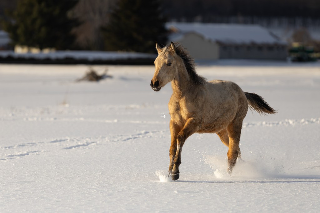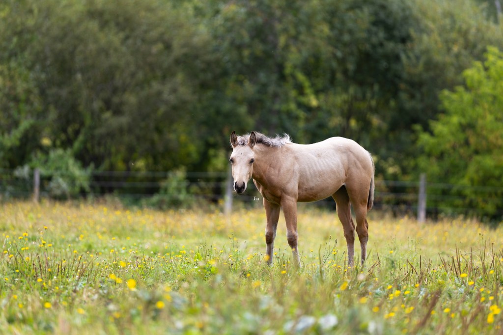 Proche de l’humain, curieuse et sociale, elle adore qu’on s’occupe d’elle et ne sera pas difficile à dresser. Nous soupçonnons qu’elle porte le gène rouan, et peu être même qu’il sortira dans son isabelle, ce qui donnera une couleur unique qui fera tourner les têtes !