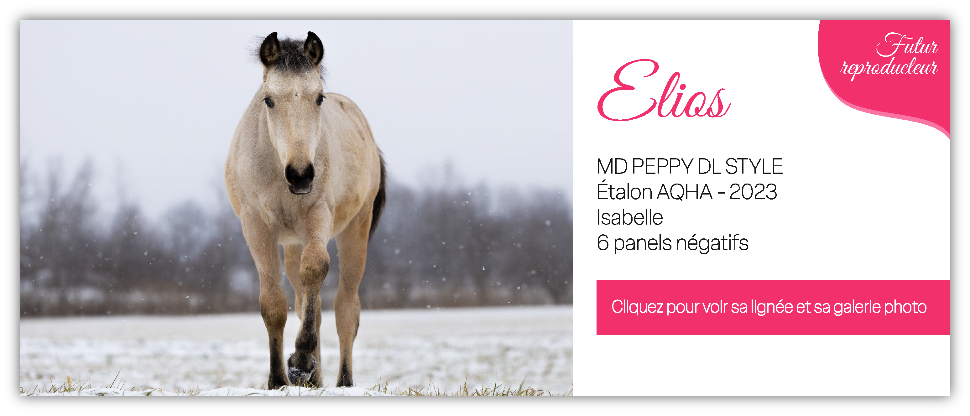 Dans le choix de l’étalon reproducteur, plusieurs facteurs entrent en jeu.Un bon géniteur doit correspondre à vos critères de conformation, de tempérament et de couleur.